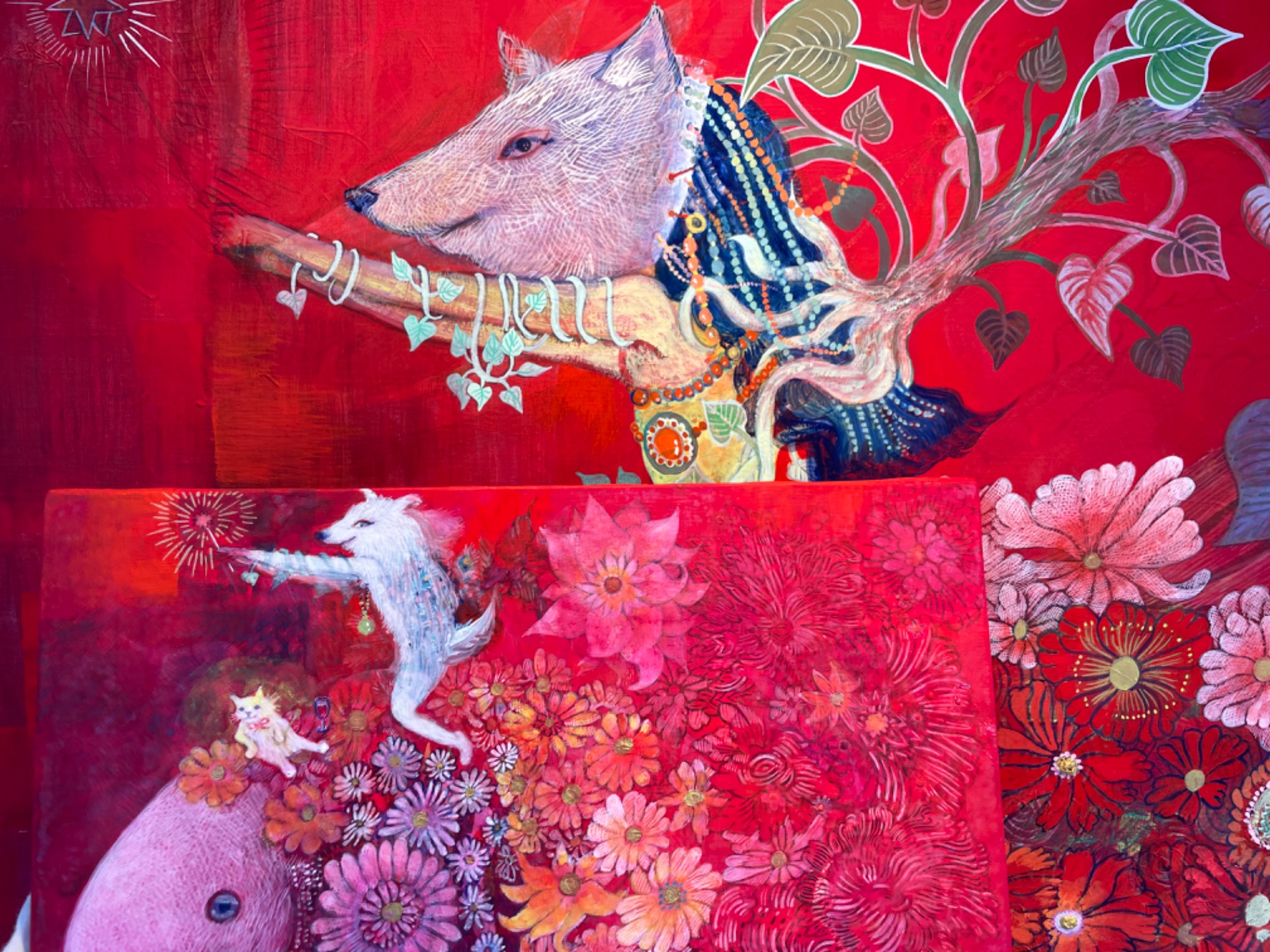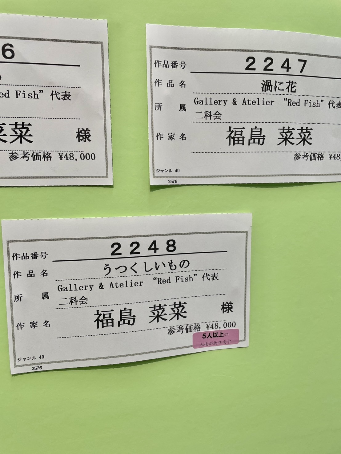 "108th Nika Exhibition" 2024/11/26 (Tue) ~ 12/1 (Sun) At the Kyocera Museum of Art in Okazaki, Kyoto I will exhibit two paintings at the 108th Nika Exhibition. This time, my painting won an award! Please come and visit us. The red painting 《Red Fish》 that often appears on Instagram and TikTok will be on display. (This image is part of it) And, 《Kind hearts》 After three years of drawing, I was finally able to see the light of day. "You did a great job," I said to the picture.