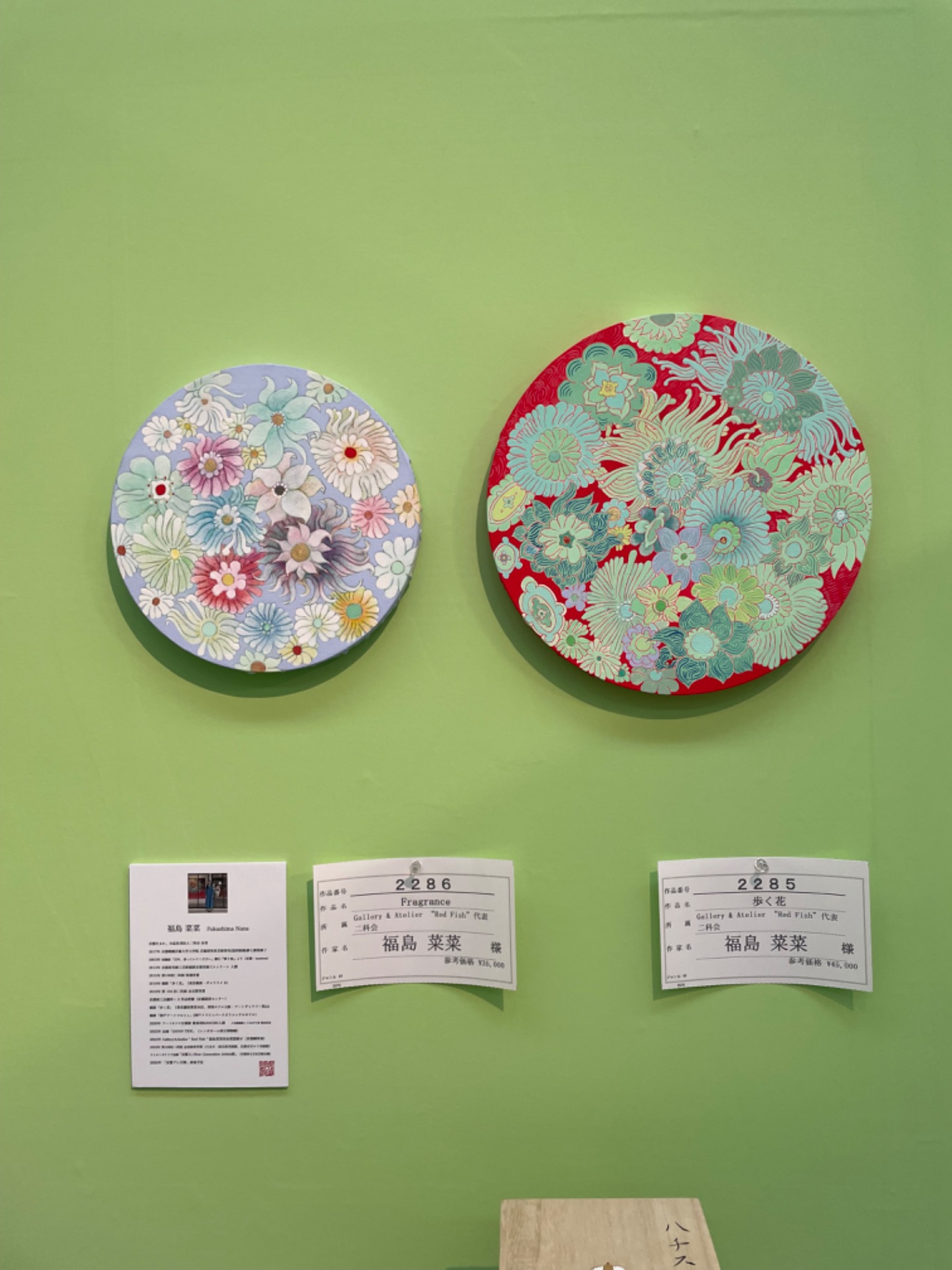 京都高島屋にて、オークション展に出品させていただいております。今回は丸い絵を2点出品、それぞれ直径30cmと25cmのキャンバス作品です。