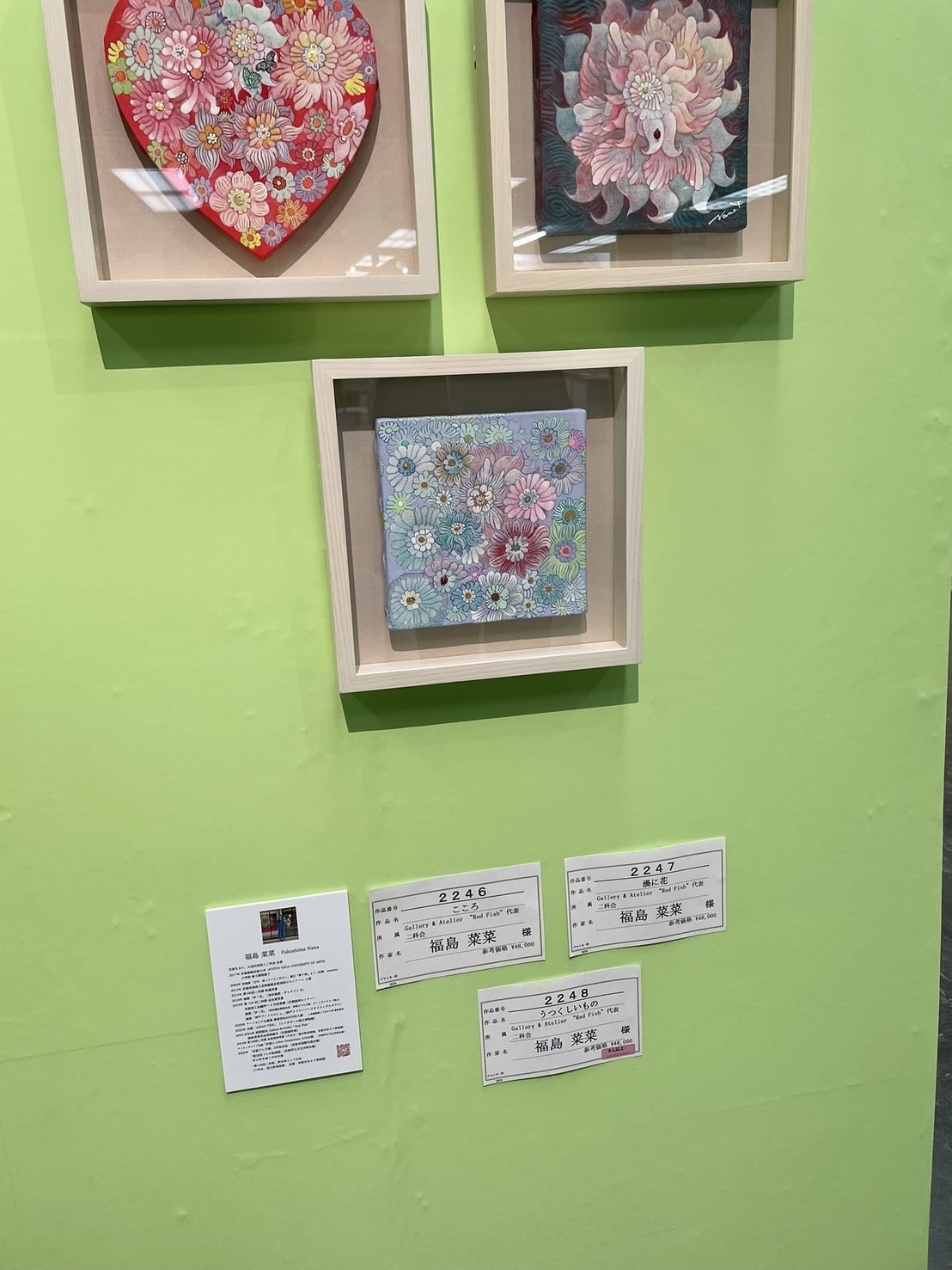 Artists donate their works, and the pieces are "adopted" by the person who places the highest bid during the auction. The proceeds are donated to welfare organizations. There are an incredible 1,000 artworks on display! This is my first time participating, and I hope the proceeds from my pieces will contribute to someone in need.