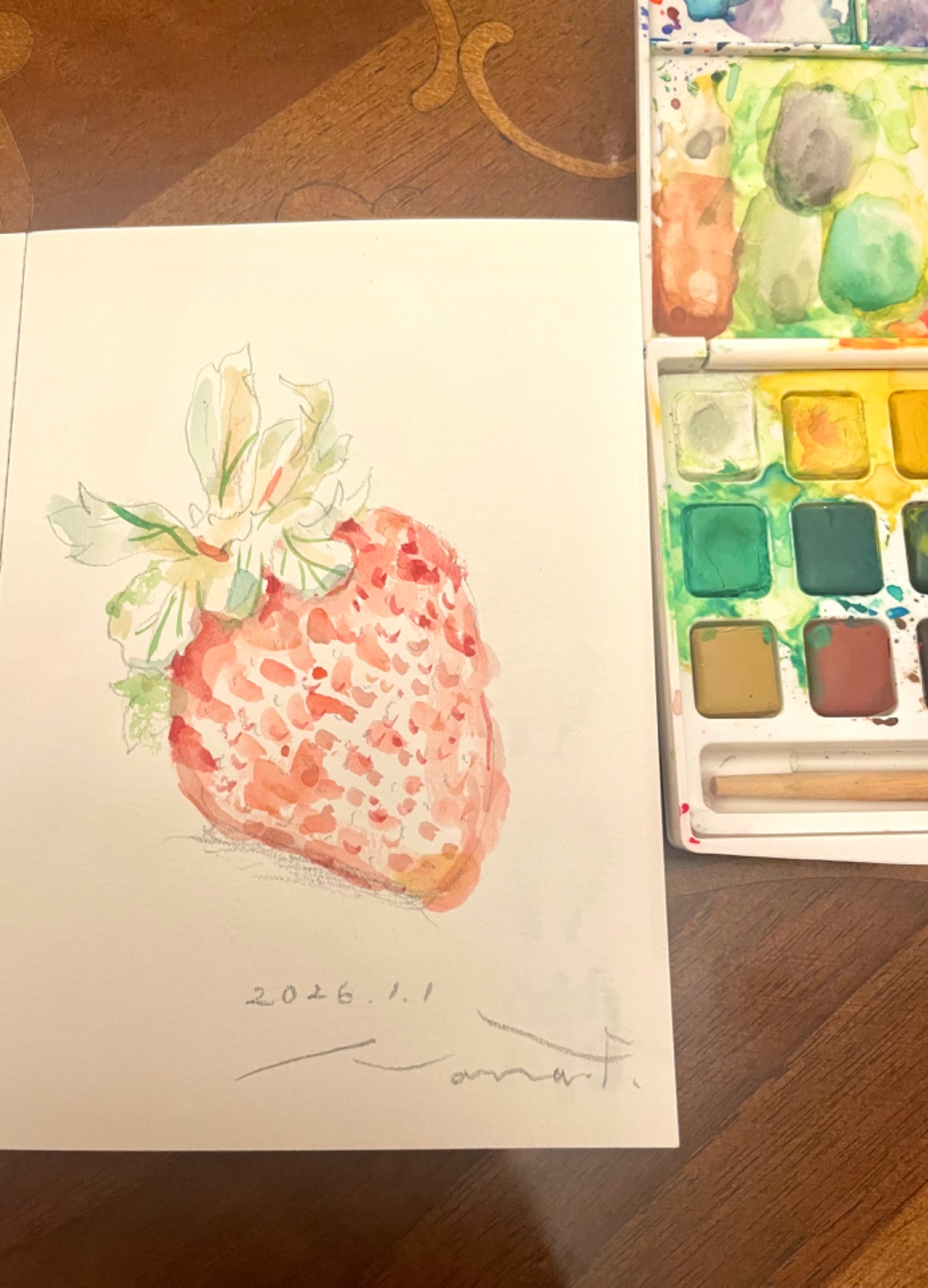 This year, I decided to draw something every single day, and I started by drawing a strawberry (Amaou).Strawberries are difficult to draw.